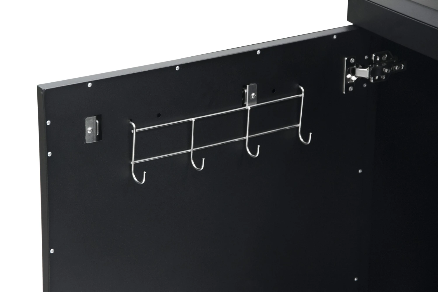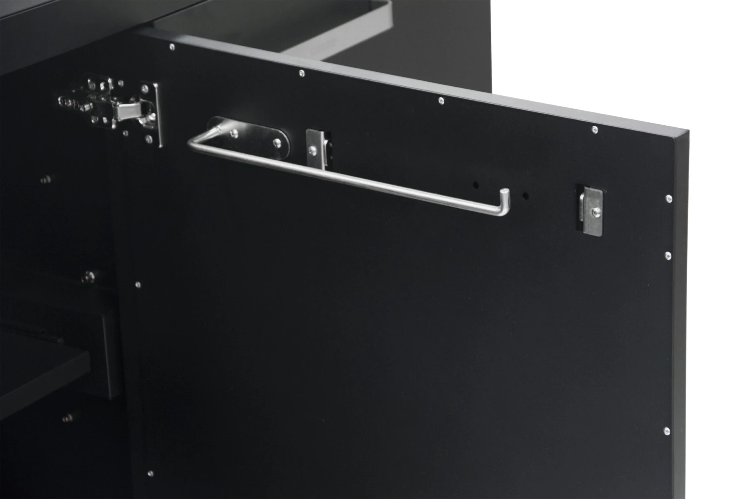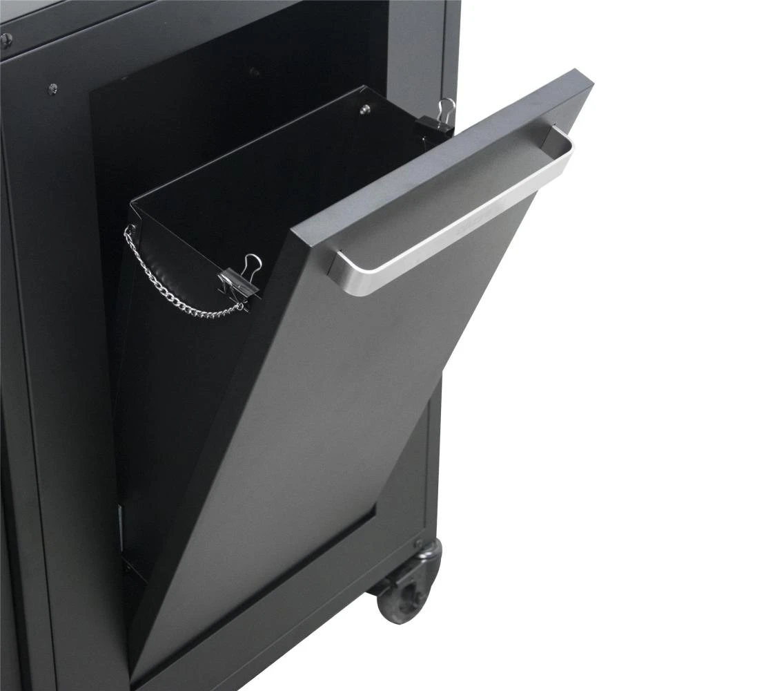 Der Outdoor Tisch verfügt über drei Türen und einen eingebauten Abfalleimer, um Ihren Außenbereich sauber und ordentlich zu halten. Eine Halterung für eine Gasflasche sorgt für sicheren Stand und einfache Handhabung. Im Innenbereich bieten drei Fächer ausreichend Stauraum für Grillzubehör wie Cozze Pizzabretter, Barbecue-Handschuhe und weiteres Grill-Equipment.