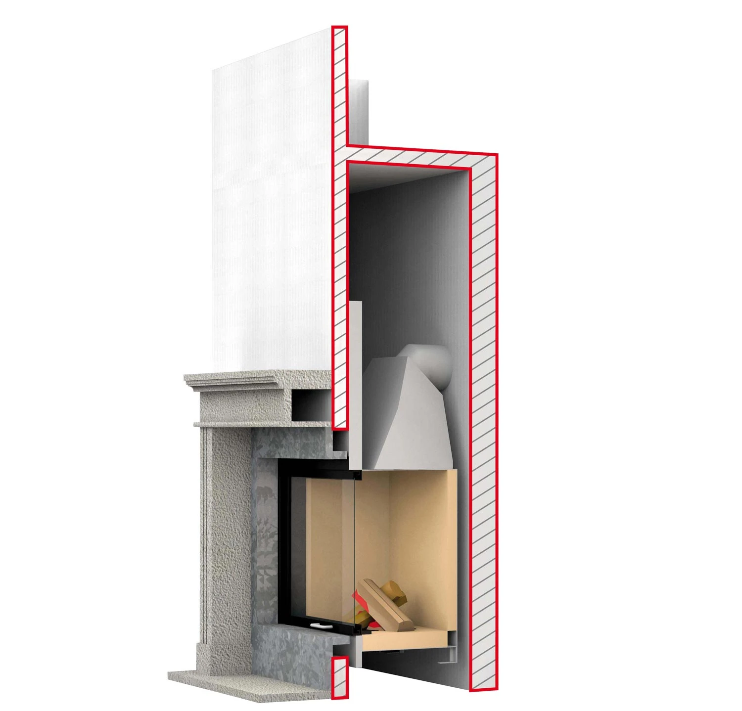 Die Wärmedämmplatte 250 KM von Silca ist eine platzsparende Bauweise im Kamin- und Kachelofenbau.